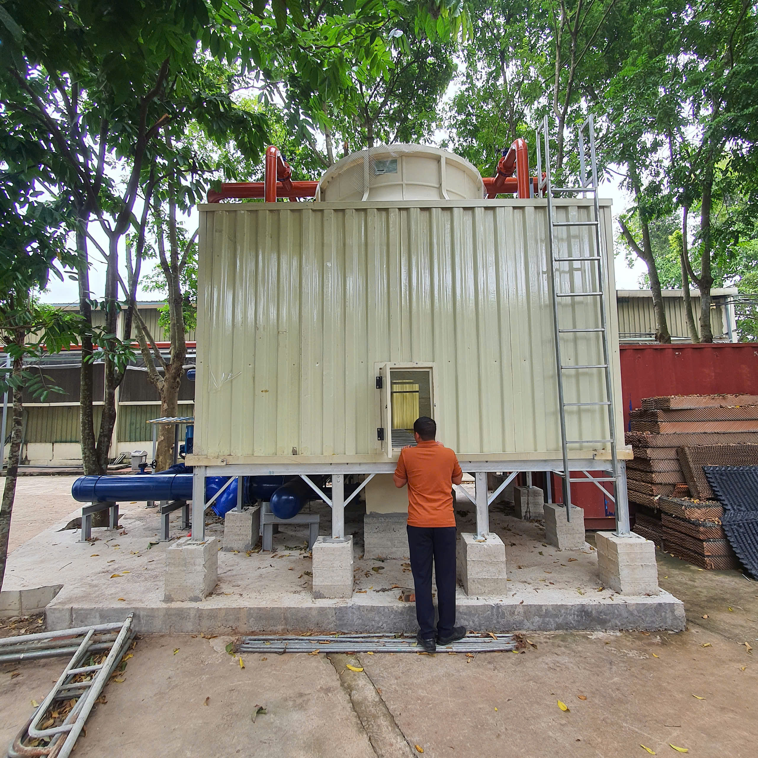 Tháp giải nhiệt vuông công suất cao, tối ưu khả năng trao đổi nhiệt và tiết kiệm diện tích mặt bằng.