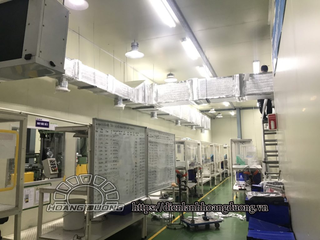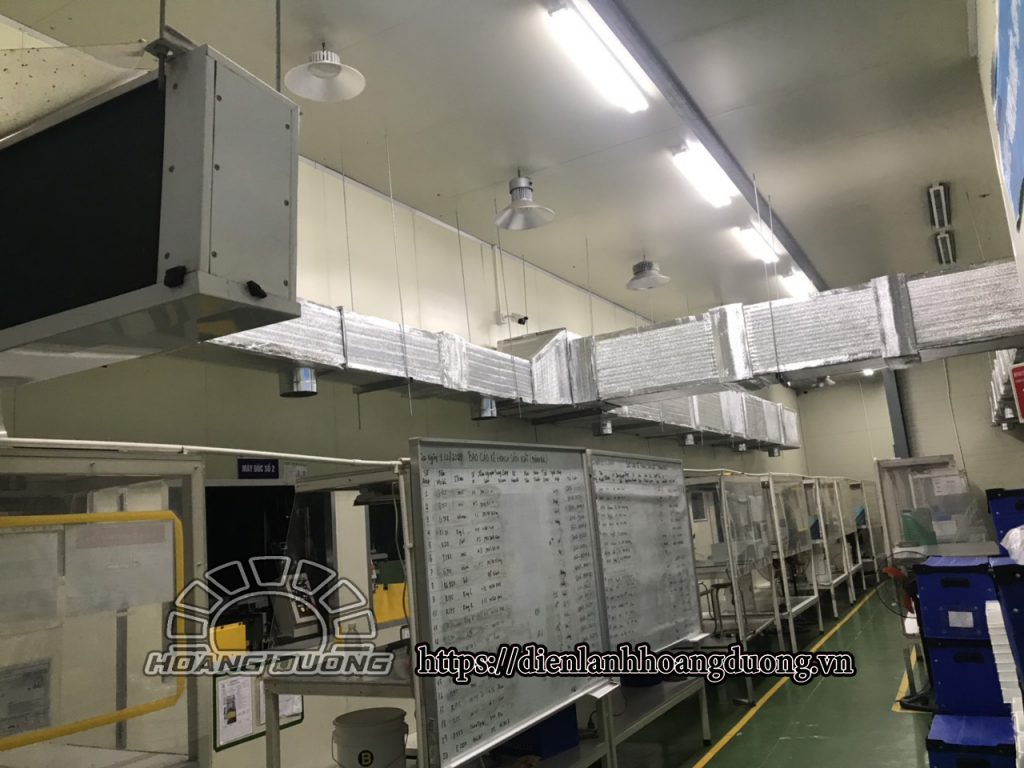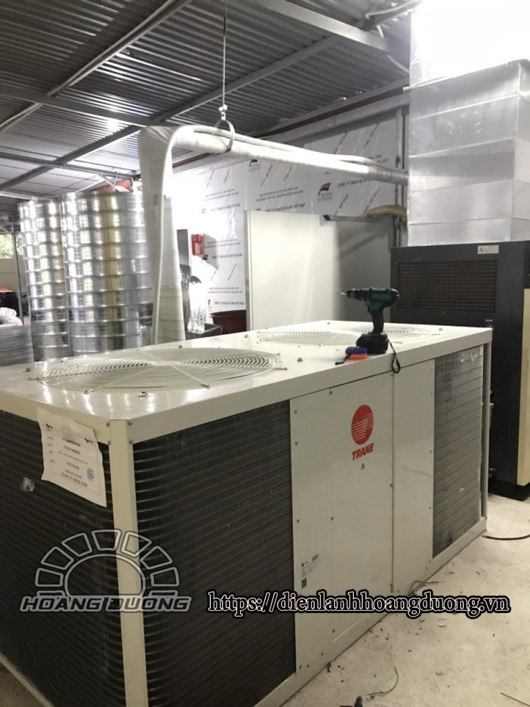 mới nhất ngày 05/03/2020 công ty vừa hoàn thành tổ máy 240.000btu trane với hệ thống nối ống gió, với yêu cầu độ mát được tỏa đều khắp không gian xưởng